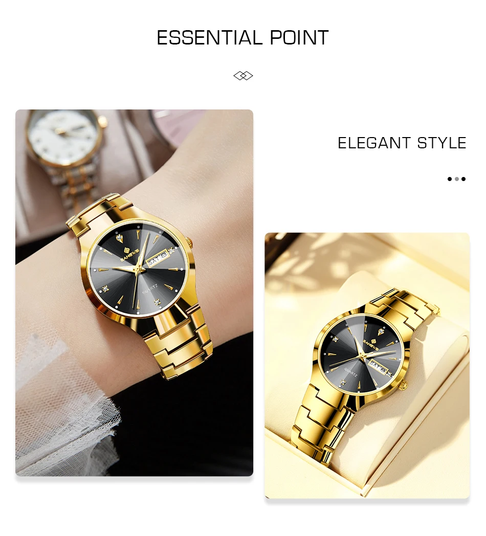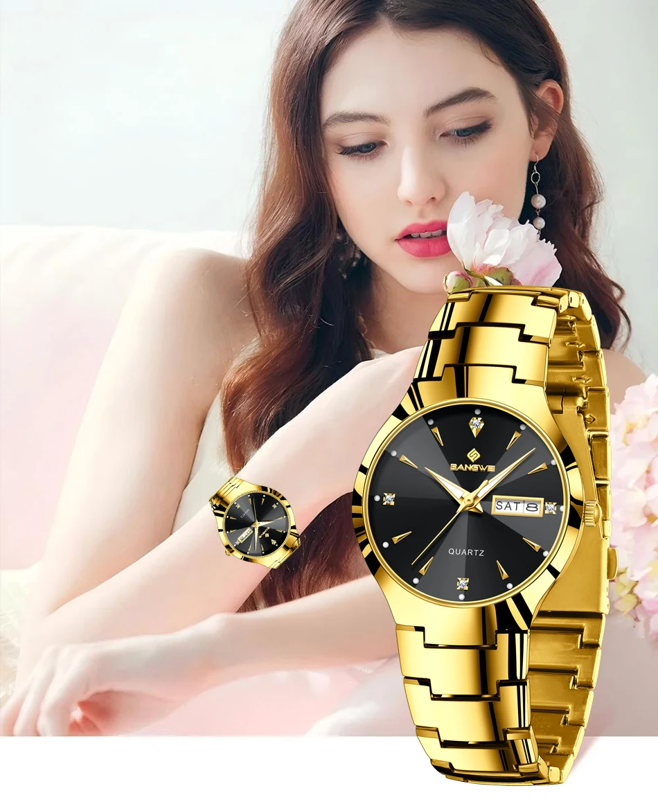 Precise quartz movement for accurate timekeeping.
